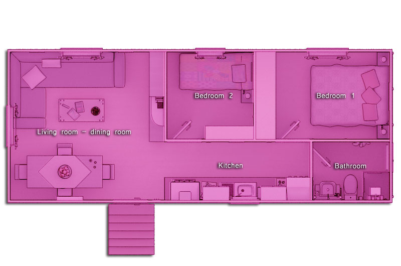 Model with one module. This model has 38.71 m2 of usable space with a living room-dining room, kitchen, 2 bedrooms and a bathroom.